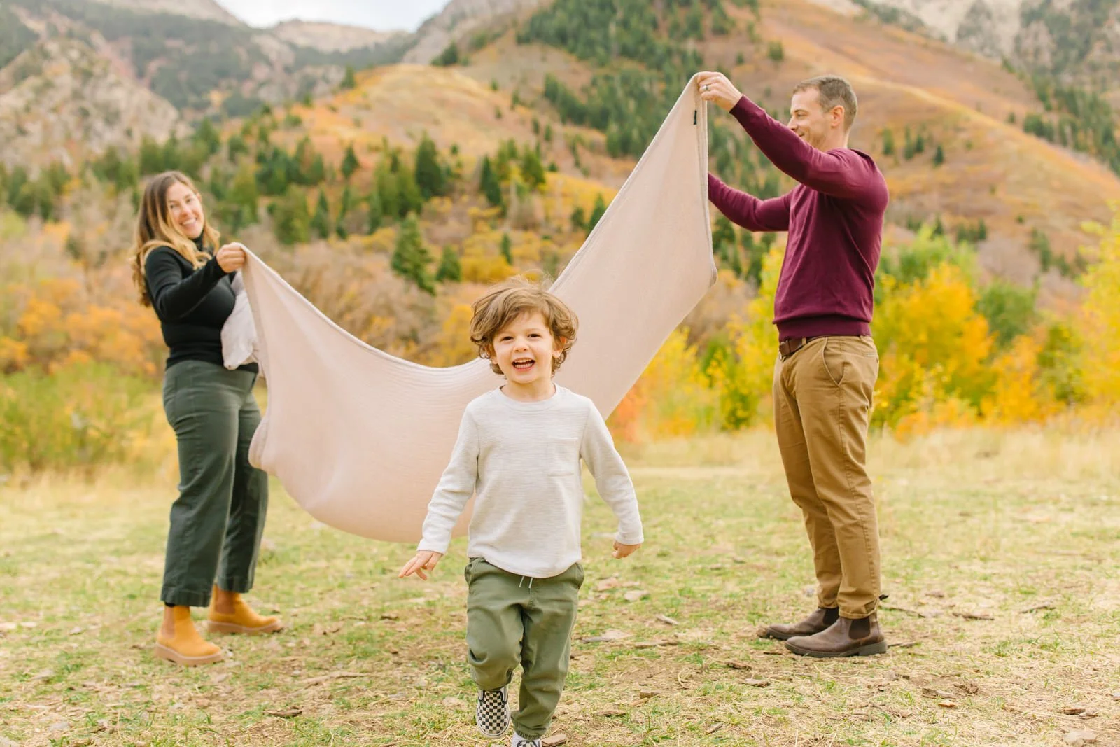 Once upon a time, fall and winter for me was about a 10 degree difference from summer with some tropical rain and palm trees outside my window. Winters look a lot different around here now, but in Utah the changing leaves and pine trees and snow are absolutely beautiful and something I look forward to photographing families in! Yes, I am still in denial wearing my sandals outside occasionally (and immediately regretting that). We can state the obvious, that I am a wimp when it comes to cold weather, but I would hate for clients to be miserable during their session due to low temperatures so my hope from this is that you come well prepared and well dressed for your pictures so we can still have lots of fun and capture your family happily for the time you pay for. I know that it may not be 20 degrees if we’re taking these in the beginning of Fall but you can incorporate whatever you want below into your outfits.