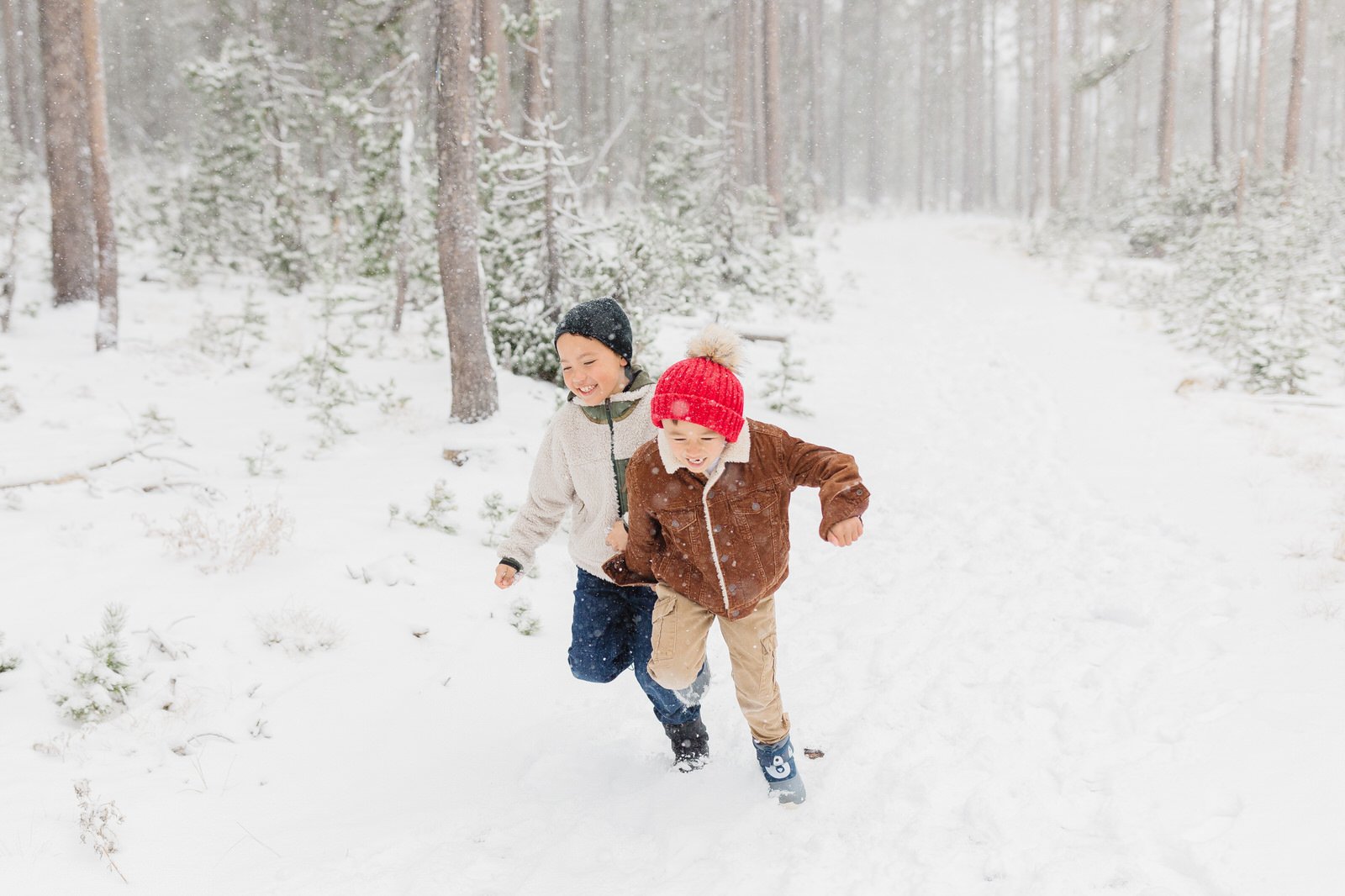 Snowy sessions where it is actively snowing makes it 100% more magical and a bit more chaotic, let’s be honest. This family were troopers having just moved from the Bay Area and not having really experienced snow yet. I’d love to share some tips if your kids are not used to the snow and how to keep morale high during your time outside. Read below for a few tips!